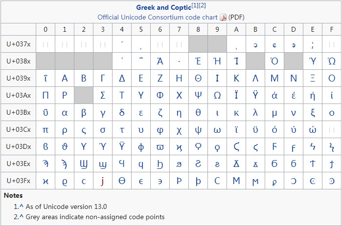 希腊字母的Unicode编码